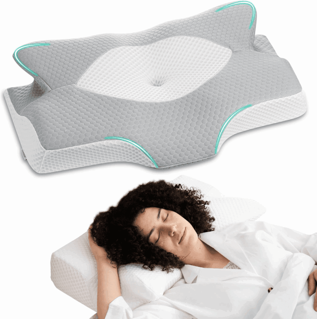 🦋 Diseño Ergonómico en Forma de Mariposa: Su contorno especial se adapta a la curvatura natural del cuello y cabeza, proporcionando un apoyo óptimo que alivia la presión y favorece una postura saludable.