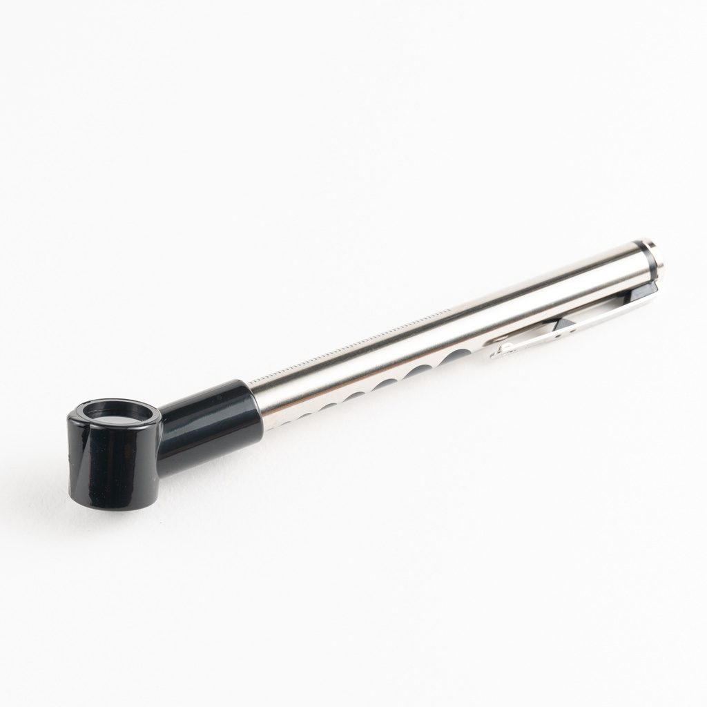 - Diseño tipo lapicera: liviano, metálico y fácil de transportar.