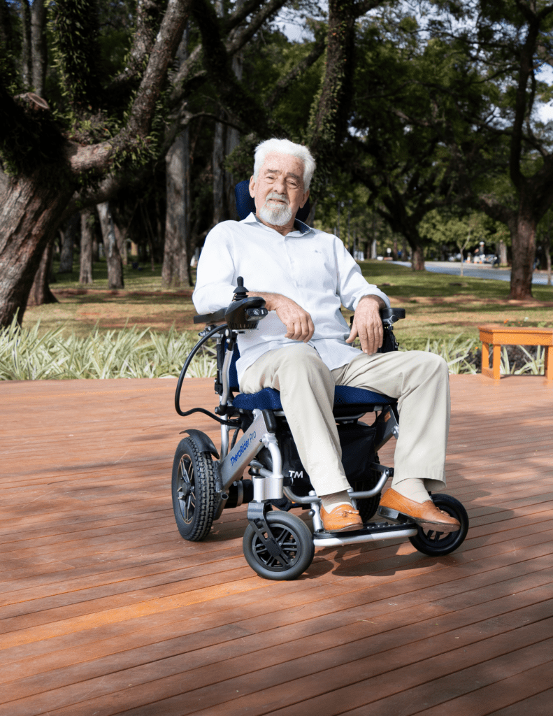 Su control responde con precisión a los movimientos de la mano, permitiendo maniobras suaves y exactas en cualquier dirección, incluso en espacios reducidos. Su estructura liviana hace que cada desplazamiento sea ágil y sin esfuerzo. Además, el control remoto ofrece tranquilidad a cuidadores y familiares, permitiéndoles asistir o tomar el control cuando sea necesario.